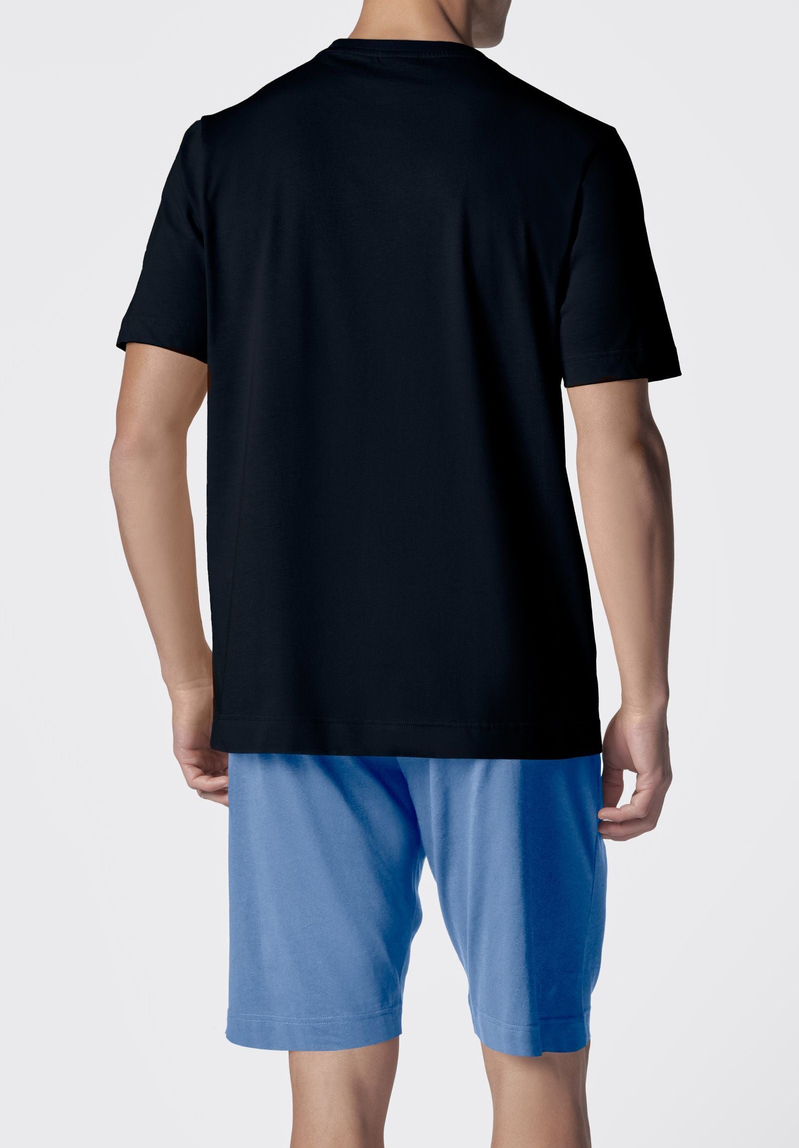 Make your relaxing moments even more comfortable with our set consisting of a crew-neck T-shirt and shorts. The sweatband of the T-shirt matches the shorts, creating a harmonious and refined look. The shorts, equipped with a drawstring and side pockets, offer practicality and comfort, perfect both for relaxing at home and for sleeping. This versatile set is ideal both as pyjamas and as a suit for your relaxing moments, always guaranteeing maximum comfort and well-being.