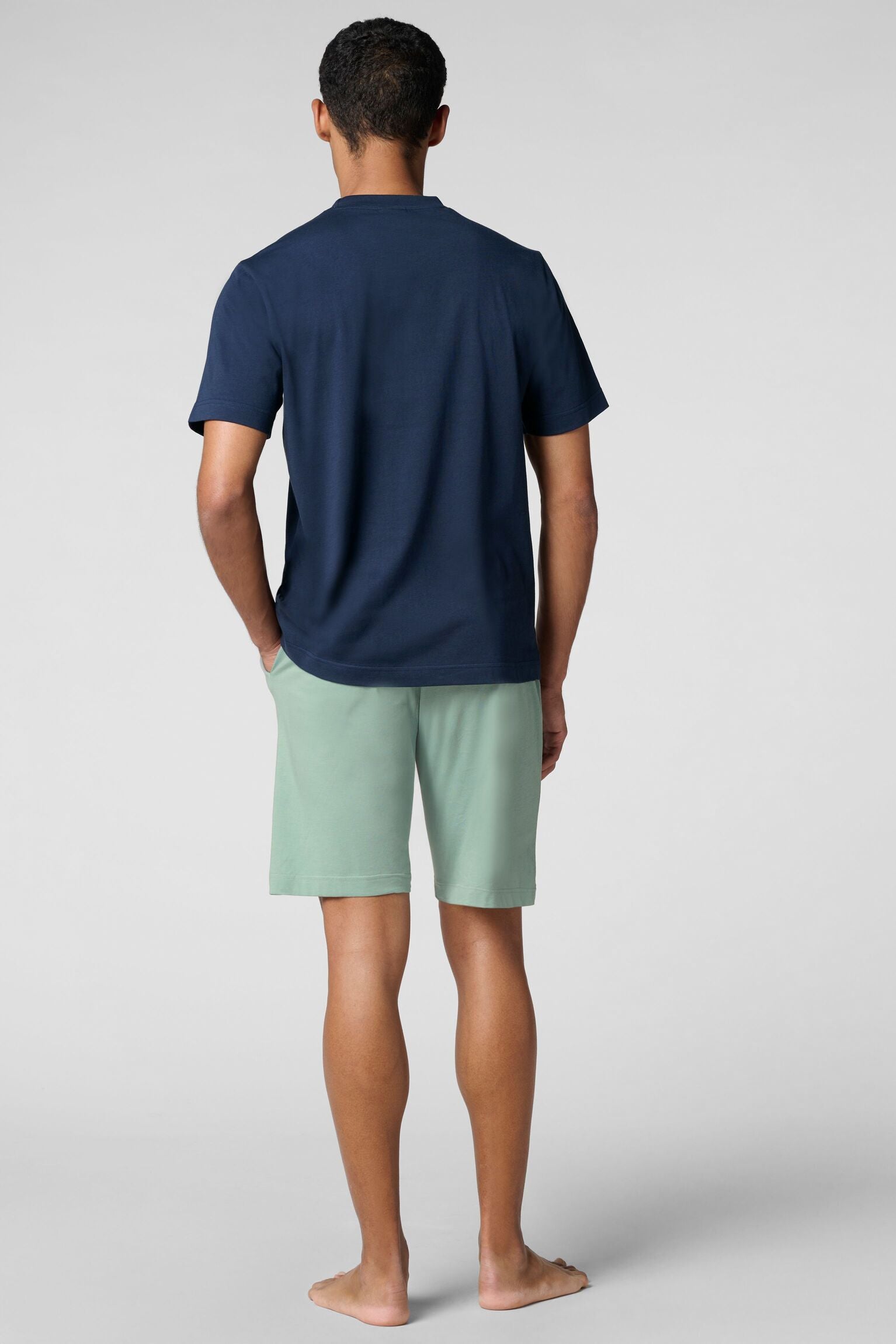 Rendi i tuoi momenti di relax ancora più confortevoli con il nostro set composto da maglietta girocollo e pantaloncini. Il parasudore della maglietta è coordinato ai pantaloncini, creando un look armonioso e raffinato. I pantaloncini, dotati di coulisse e tasche laterali, offrono praticità e comfort, perfetti sia per rilassarsi a casa che per dormire. Questo set versatile è l'ideale sia come pigiama che come completo per i tuoi momenti di relax, garantendo sempre il massimo del comfort e del benessere.