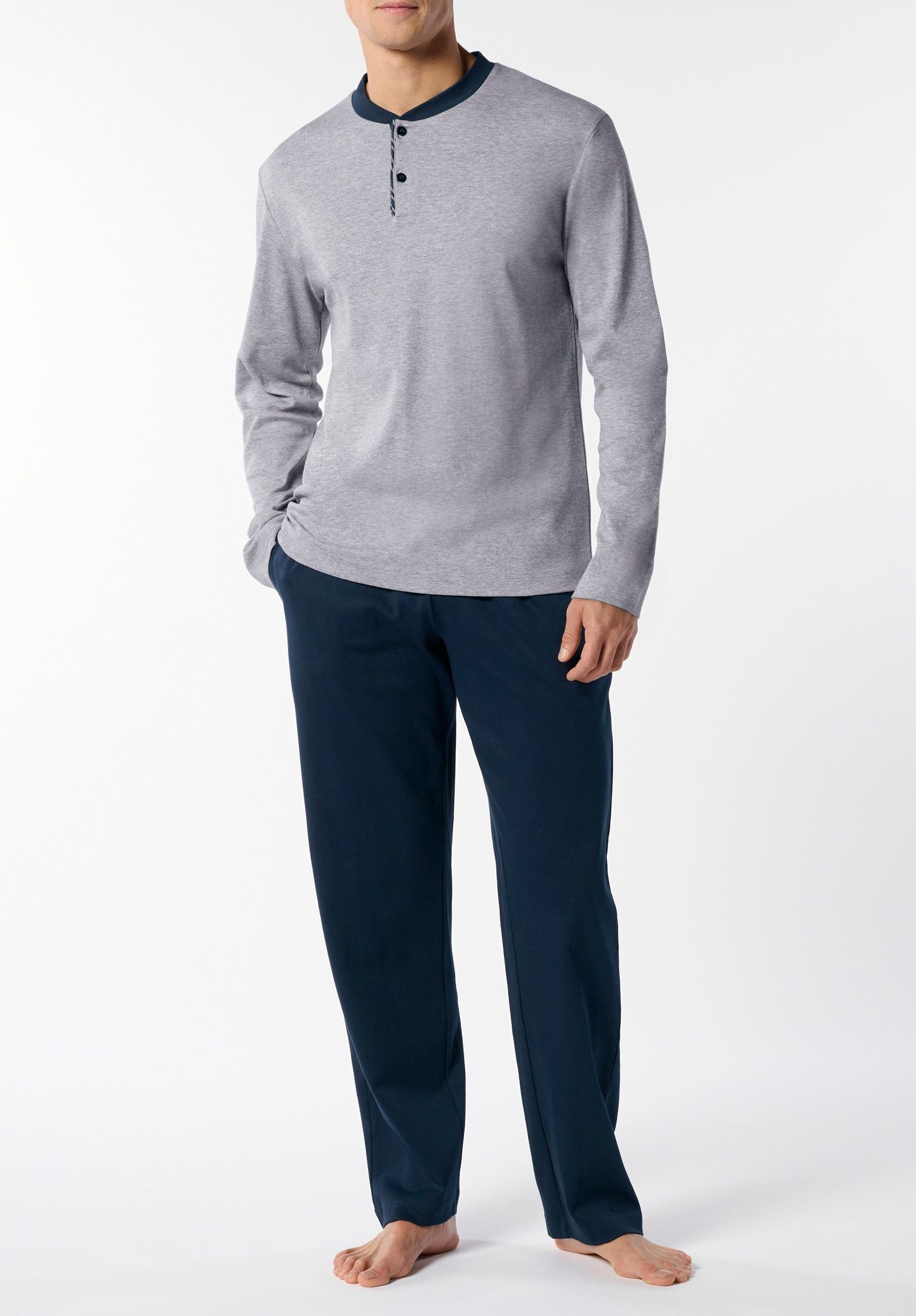 Scopri il pigiama uomo serafino, perfetto per chi cerca il massimo del comfort senza rinunciare all’eleganza. Realizzato in morbido cotone, questo pigiama lungo è caratterizzato da un design curato nei minimi dettagli: il parasudore interno e l’apertura del collo presentano un raffinato tessuto rigato, che dona un tocco di stile e originalità.La maglia serafino con abbottonatura parziale offre una vestibilità pratica e versatile, ideale per il relax a casa. I pantaloni sono dotati di comode tasche laterali, perfette per avere sempre a portata di mano piccoli oggetti anche durante il tempo libero. La vestibilità regolare assicura libertà di movimento e un comfort prolungato durante tutta la notte.