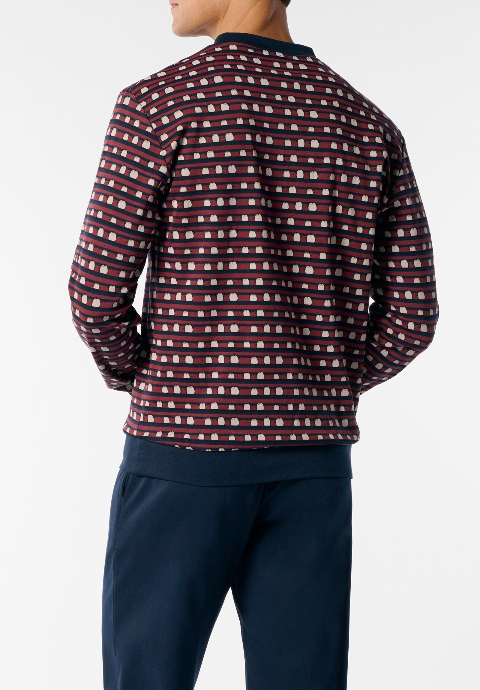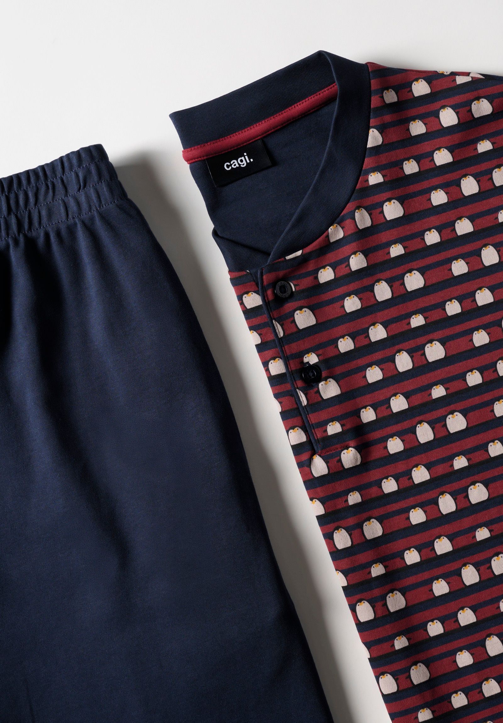 Scopri il pigiama lungo serafino con stampa pinguini, pensato per chi ama un tocco di fantasia nei momenti di relax. Realizzato in caldo cotone interlock, è perfetto per affrontare le serate invernali con stile e comodità.La maglia, impreziosita da una simpatica stampa all-over con pinguini, è dotata di abbottonatura serafino e dettagli curati come il parasudore in contrasto e il bordo maglia coordinato al pantalone. I polsini su maniche e fondo migliorano la vestibilità e mantengono il calore.I pantaloni tinta unita sono completi di tasche laterali e polsini alla caviglia, per una vestibilità stabile e pratica. Un pigiama divertente e confortevole, perfetto per l’inverno o da regalare a chi ama la qualità con un pizzico di allegria.